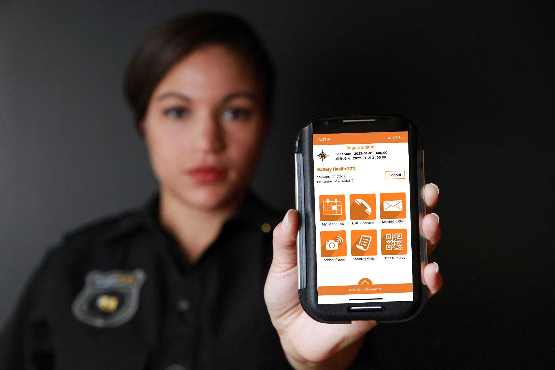 Our Geocor technology tracks the guard's real-time movement history by corresponding with the global positioning satellites to create customized patrol points (POI). Each guard is equipped with a tracking app that can be downloaded for free on Android or iOS devices. Once the guard reaches the POI, it instantly sends a signal to our system which acknowledges that the area has been patrolled. Meanwhile, the guard's activity is automatically being observed by the monitoring system which issues an alert if it detects any inactivity or missed patrols.